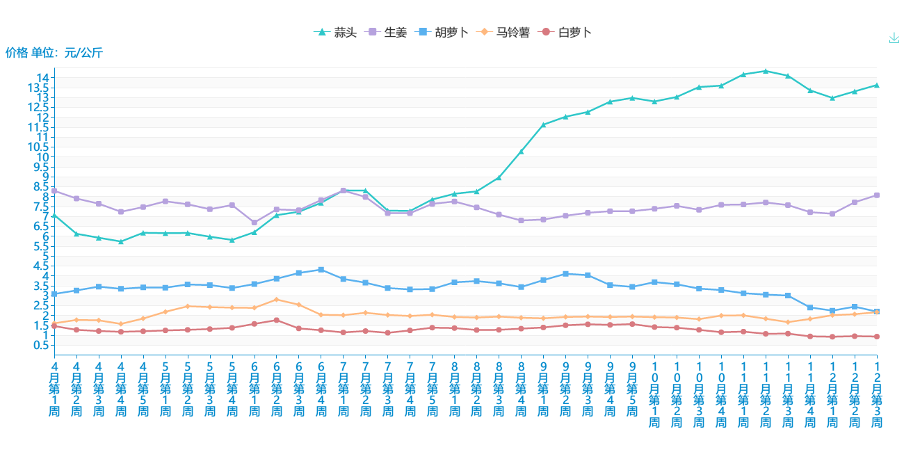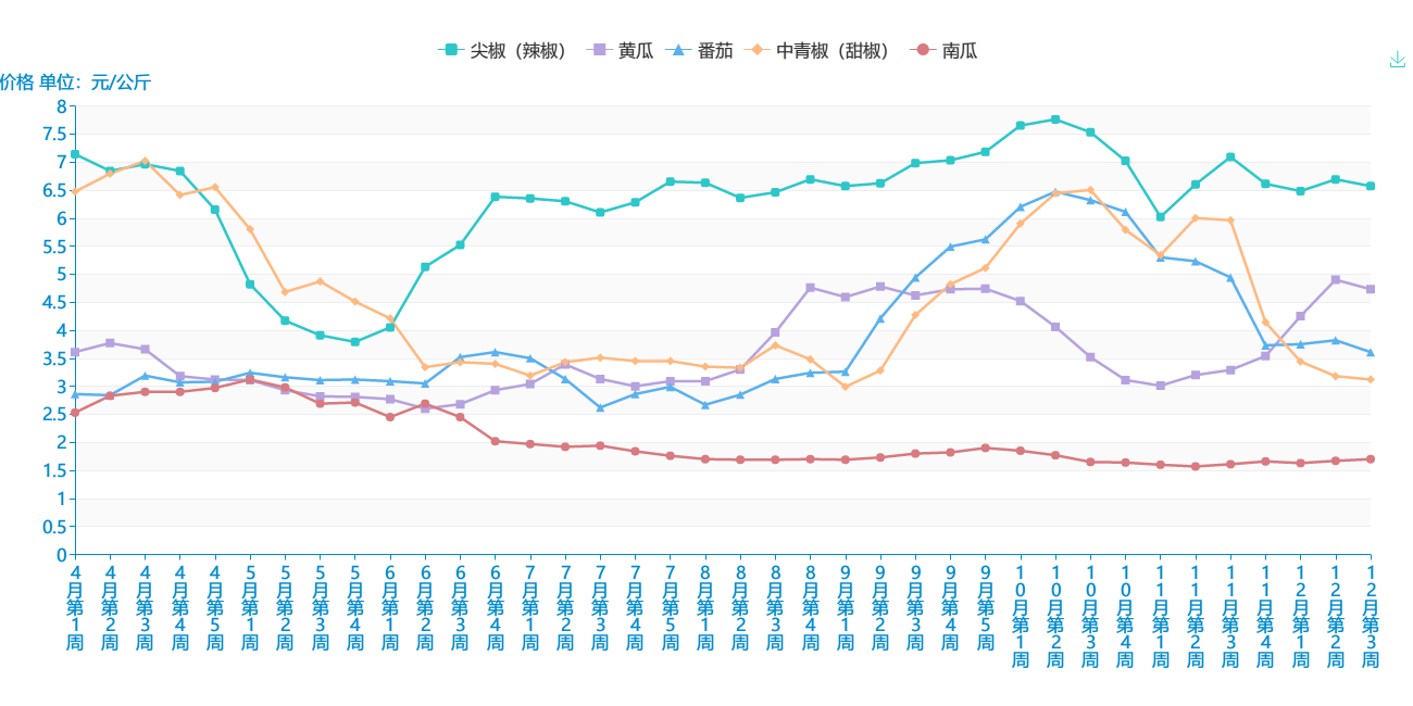 附件:12月份第3周蔬菜批发市场价格表及走势图