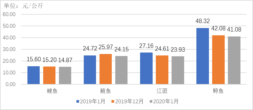 图6.水产类2019年1月、12月和2020年1月均价比较图