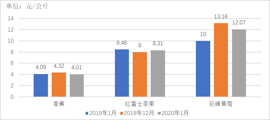 图13. 3种水果2019年1月、12月和2020年1月均价比较