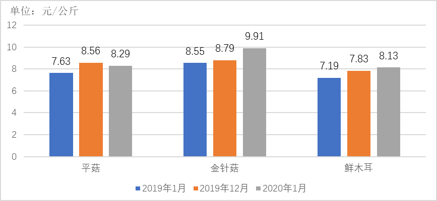图15.食用菌2019年1月、12月和2020年1月均价比较图