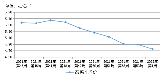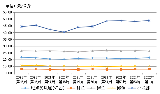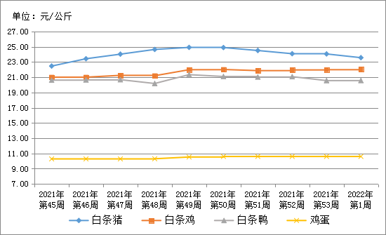 图3 2022年第1周肉禽蛋类产品批发市场价格走势图