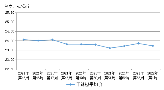 图8 2022年第1周10种干辣椒批发市场平均价格走势图