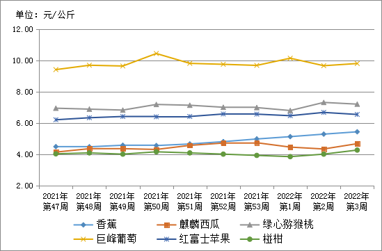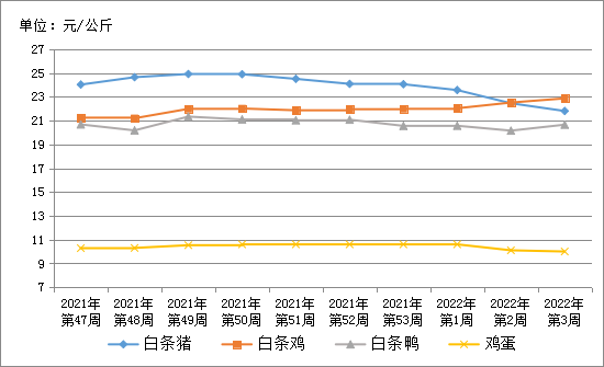图3 2022年第3周肉禽蛋类产品批发市场价格走势图