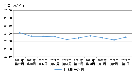 图8 2022年第3周10种干辣椒批发市场平均价格走势图