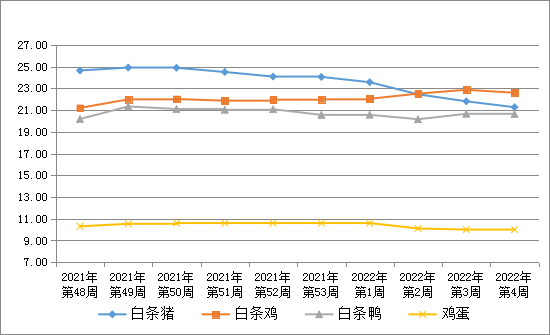 图3 2022年第4周肉禽蛋类产品批发市场价格走势图