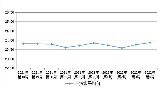图8 2022年第4周10种干辣椒批发市场平均价格走势图