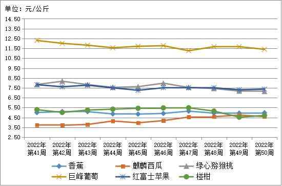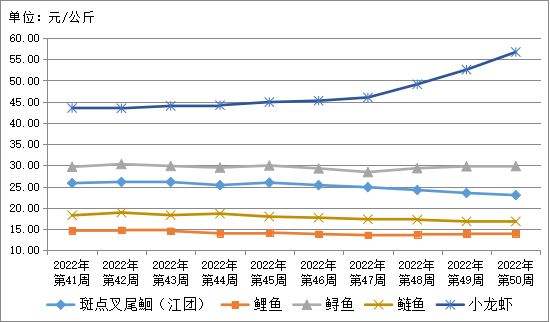 图3 2022年第50周肉禽蛋类产品批发市场价格走势图