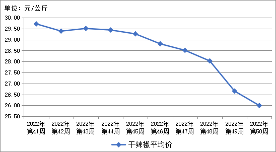 图8 2022年第50周10种干辣椒批发市场平均价格走势图