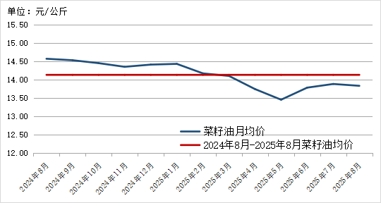 图5. 2024年8月-2025年8月菜籽油价格走势