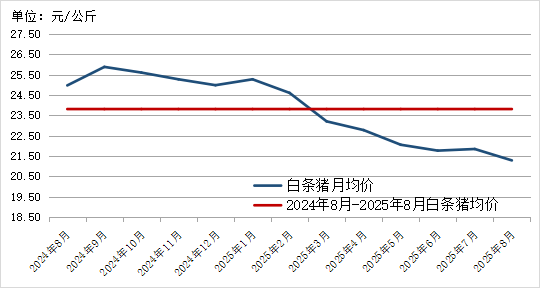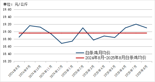 图8. 2024年8月-2025年8月白条鸡价格走势