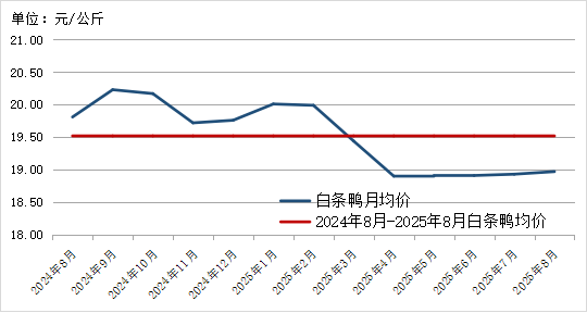 图9. 2024年8月-2025年8月白条鸭价格走势