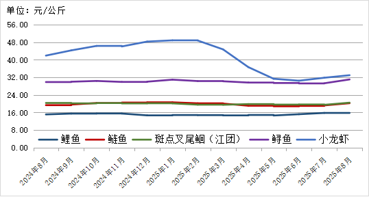 图11. 2024年8月-2025年8月5种水产品价格走势