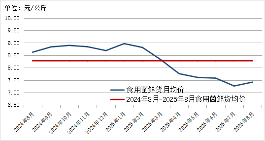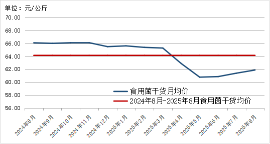 图15. 2024年8月-2025年8月3种食用菌干货平均价格走势