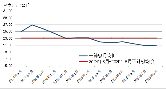 图16. 2024年8月-2025年8月10种干辣椒平均价格走势