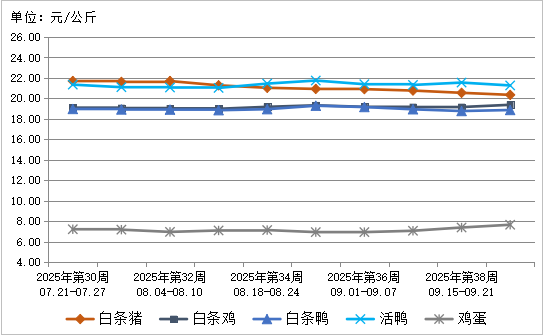 图3 2025年第39周肉禽蛋类产品批发市场价格走势