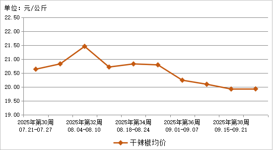 图9 2025年第39周10种干辣椒批发市场平均价格走势