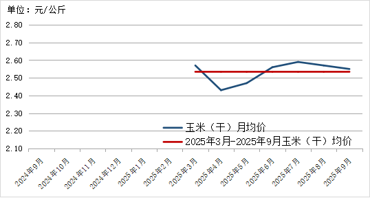 图3. 2024年9月-2025年9月玉米(干)价格走势