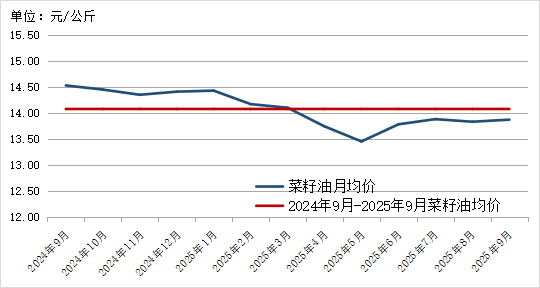图5. 2024年9月-2025年9月菜籽油价格走势