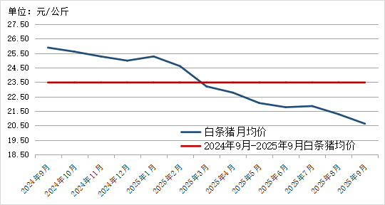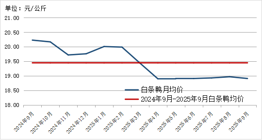 图9. 2024年9月-2025年9月白条鸭价格走势