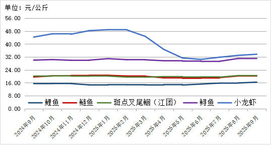 图11. 2024年9月-2025年9月5种水产品价格走势