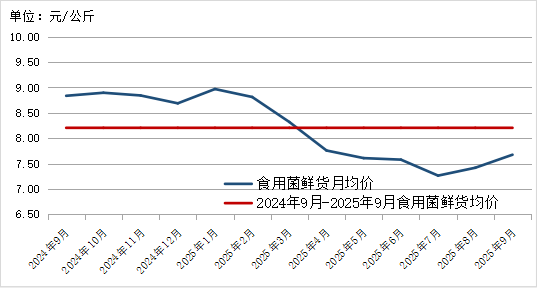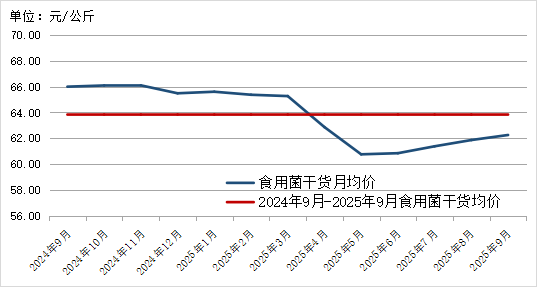 图15. 2024年9月-2025年9月3种食用菌干货平均价格走势