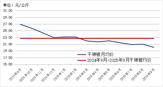 图16. 2024年9月-2025年9月10种干辣椒平均价格走势