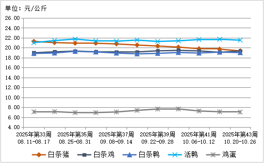 图3 2025年第43周肉禽蛋类产品批发市场价格走势