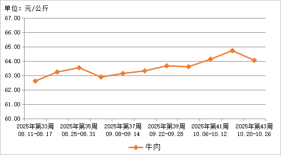图4 2025年第43周牛肉批发市场价格走势