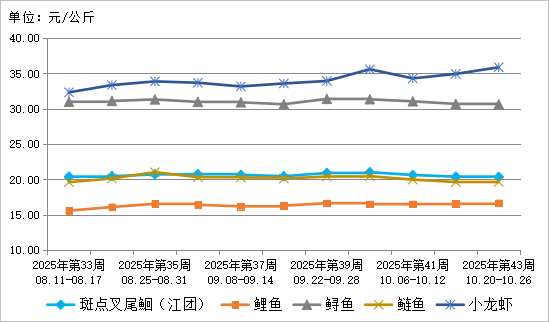 表3 2025年第43周水产类产品批发市场价格