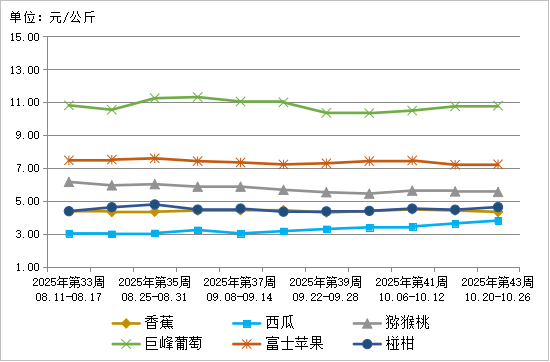 图7 2025年第43周6种水果批发市场价格走势