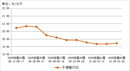 图9 2025年第43周10种干辣椒批发市场平均价格走势