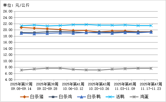 图3 2025年第47周肉禽蛋类产品批发市场价格走势