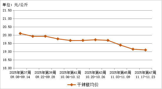 图9 2025年第47周10种干辣椒批发市场平均价格走势