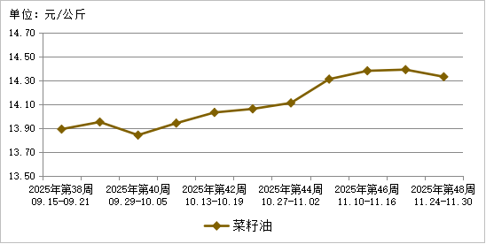 图2 2025年第48周菜籽油批发市场价格走势