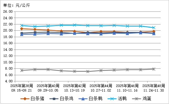 图3 2025年第48周肉禽蛋类产品批发市场价格走势