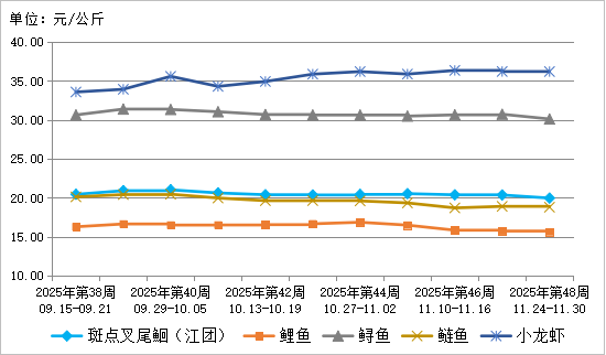 表3 2025年第48周水产类产品批发市场价格