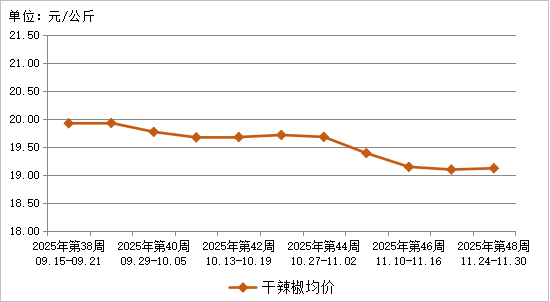 图9 2025年第48周10种干辣椒批发市场平均价格走势