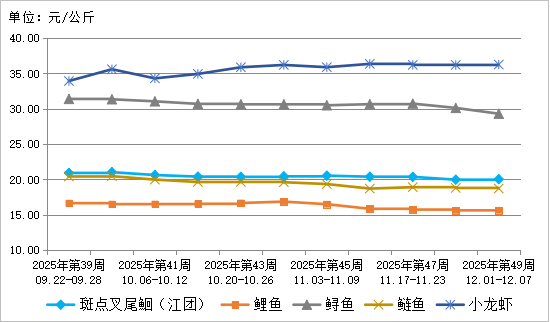 表3 2025年第49周水产类产品批发市场价格