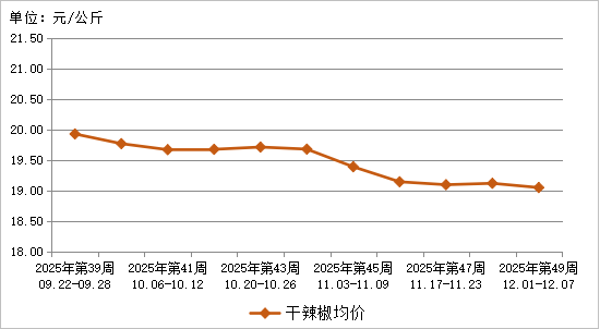 图9 2025年第49周10种干辣椒批发市场平均价格走势