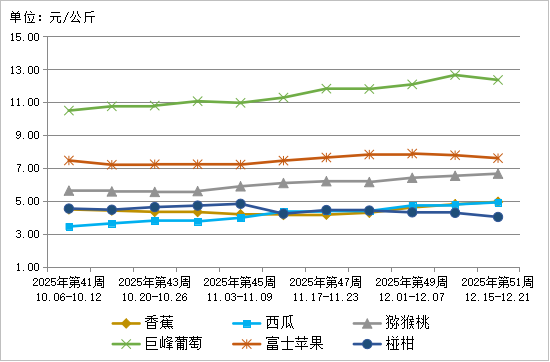 图7 2025年第51周6种水果批发市场价格走势