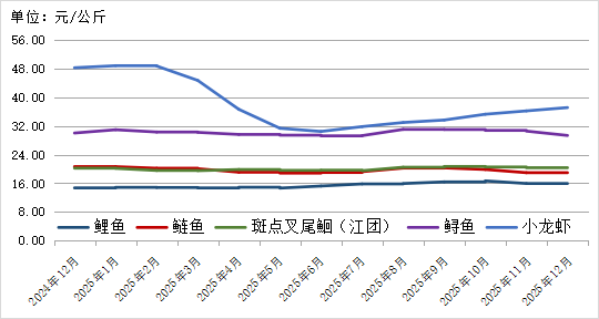 图11. 2024年12月-2025年12月5种水产品价格走势
