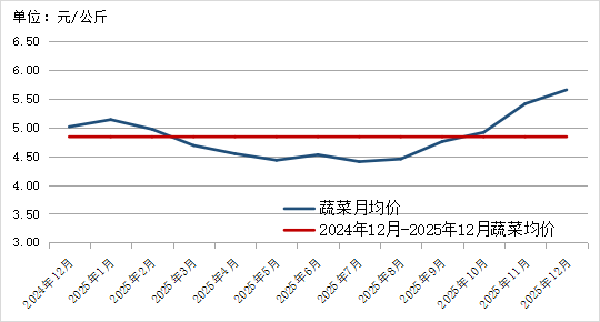 我省蔬菜产品均价环比小幅上涨,同比涨幅较大。前期不利天气对蔬菜供应的滞后影响仍存,不过12月全省光温充足、土壤墒情良好,气温与常年相比偏高1.5-3.6℃,本地蔬菜生长逐渐加快,蔬菜供应形势由偏紧向宽松转变,价格持续上涨动力下降,月内蔬菜价格呈先涨后跌走势,不过冬季蔬菜种植及运输成本增加,叠加前期整体蔬菜价位水平偏高,因此月均价环比继续上涨。另外由于今年四季度蔬菜价格打破季节性下跌的规律涨至高位,带动月均价同比涨幅较大。