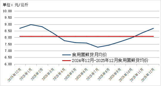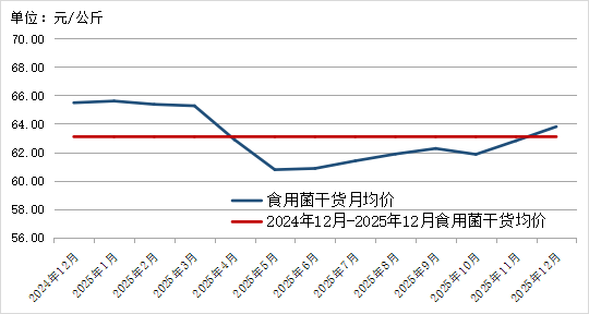 图15. 2024年12月-2025年12月3种食用菌干货平均价格走势
