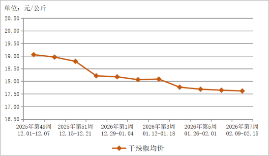 图9 2026年第7周10种干辣椒批发市场平均价格走势