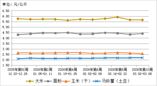 图1 2026年第10周粮食类产品批发市场价格走势