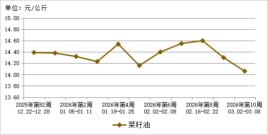 图2 2026年第10周菜籽油批发市场价格走势