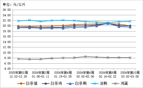 图3 2026年第10周肉禽蛋类产品批发市场价格走势