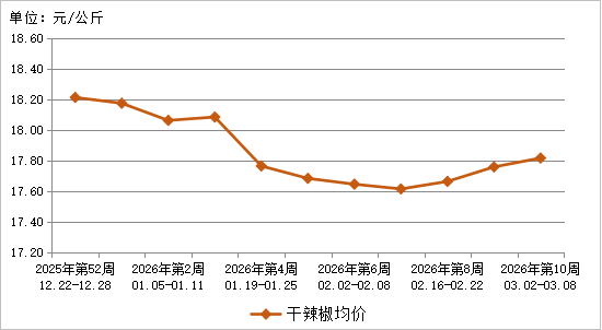 图9 2026年第10周10种干辣椒批发市场平均价格走势