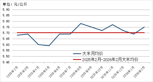 图1. 2025年2月-2026年2月大米价格走势