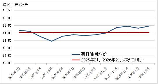 图5. 2025年2月-2026年2月菜籽油价格走势
